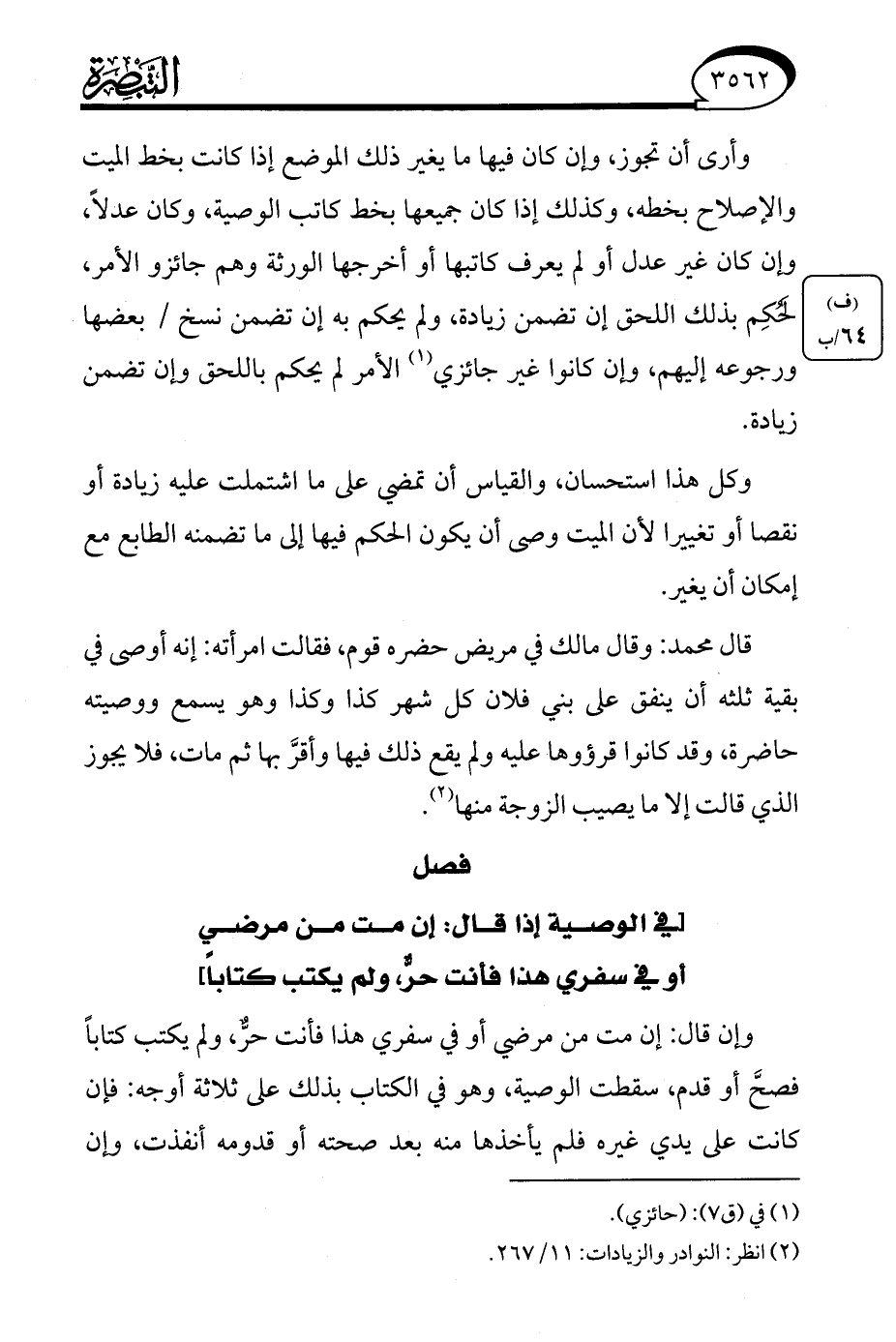 (¬2) انظر: النوادر والزيادات: 11/ 267.