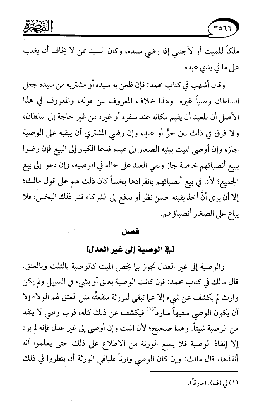 قال مالك في كتاب محمد: فإن كانت الوصية بعتق أو بشيء في السبيل ولم يكن وارث لم يكشف عن شيء إلا عما تبقى للورثة منفعتُه مثل العتق لهم الولاء إلا أن يكون الوصي سفيهًا سارقًا (¬1) فيكشف عن ذلك كله، فرب وصي لا ينفذ من الوصية شيئًا. وهذا صحيح؛ لأن الميت وإن أوصى إلى غير عدل فإنه لم يرد إلا إنفاذ الوصية فلا يمنع الورثة من الاطلاع على ذلك حتى يعلموا أنه أنفذها، قال مالك: وإن كان الوصي وارثًا فلباقي الورثة أن ينظروا في ذلك