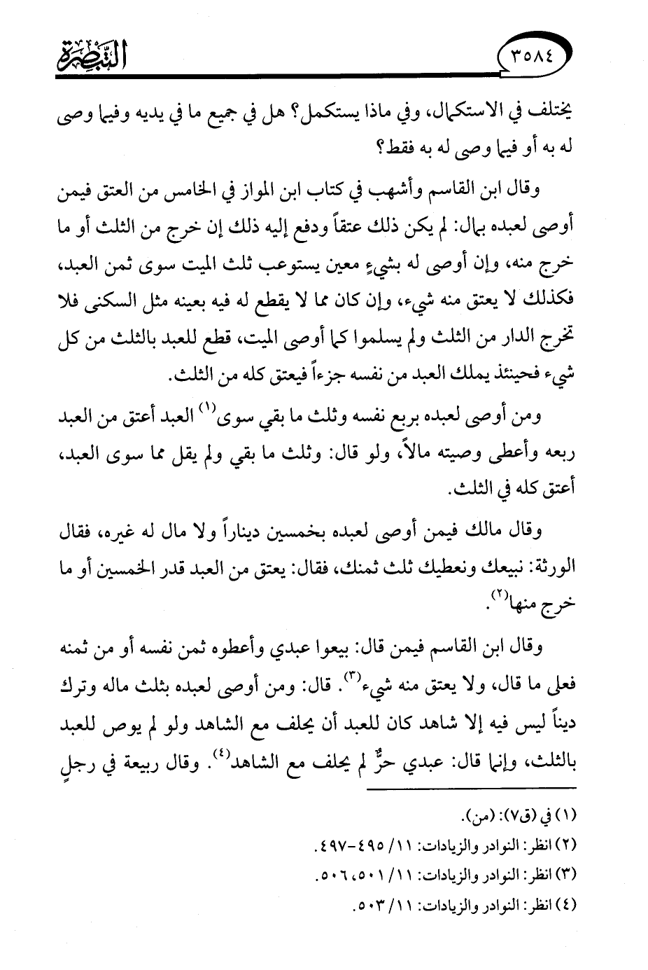 (¬3) انظر: النوادر والزيادات: 11/ 501، 506.