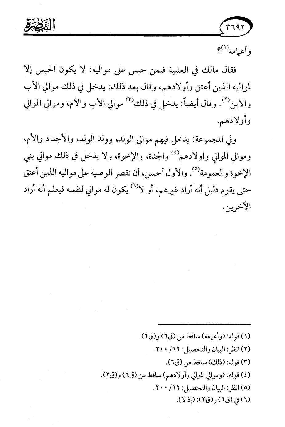 (¬5) انظر: البيان والتحصيل: 12/ 200.