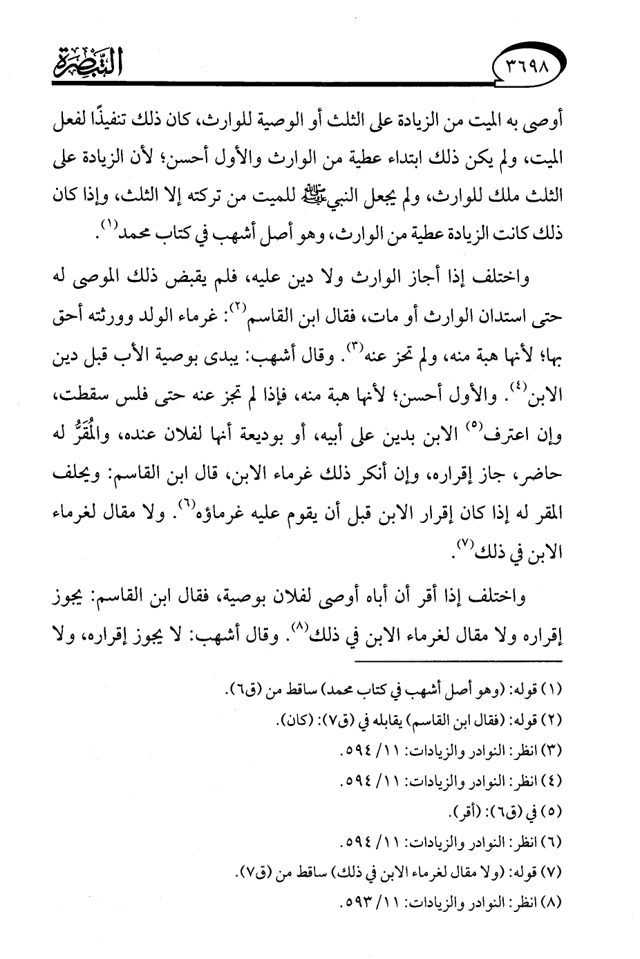 (¬8) انظر: النوادر والزيادات: 11/ 593.