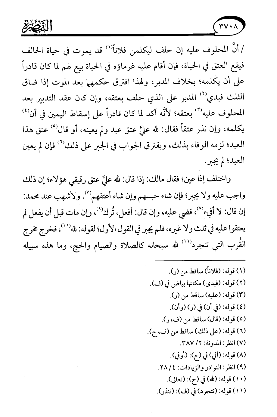 (¬9) انظر: النوادر والزيادات: 4/ 28.