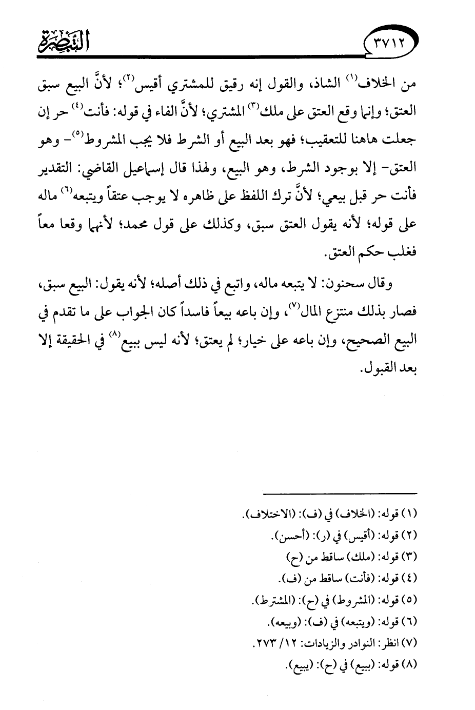 (¬7) انظر: النوادر والزيادات: 12/ 273.