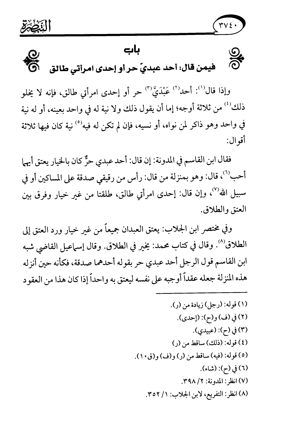 (¬8) انظر: التفريع، لابن الجلاب: 1/ 352.