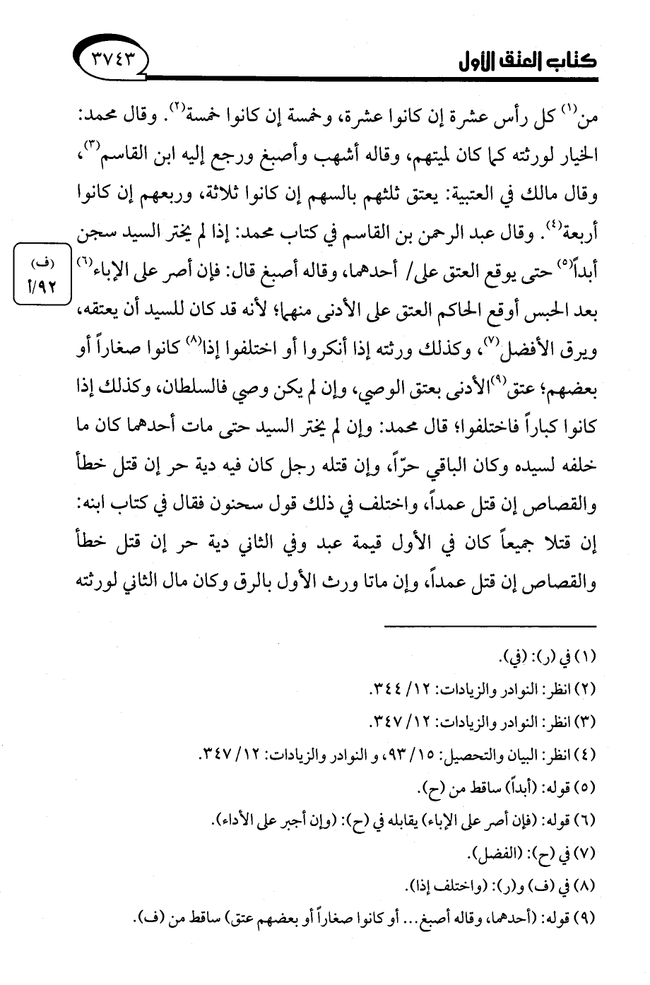 (¬4) انظر: البيان والتحصيل: 15/ 93، والنوادر والزيادات: 12/ 347.