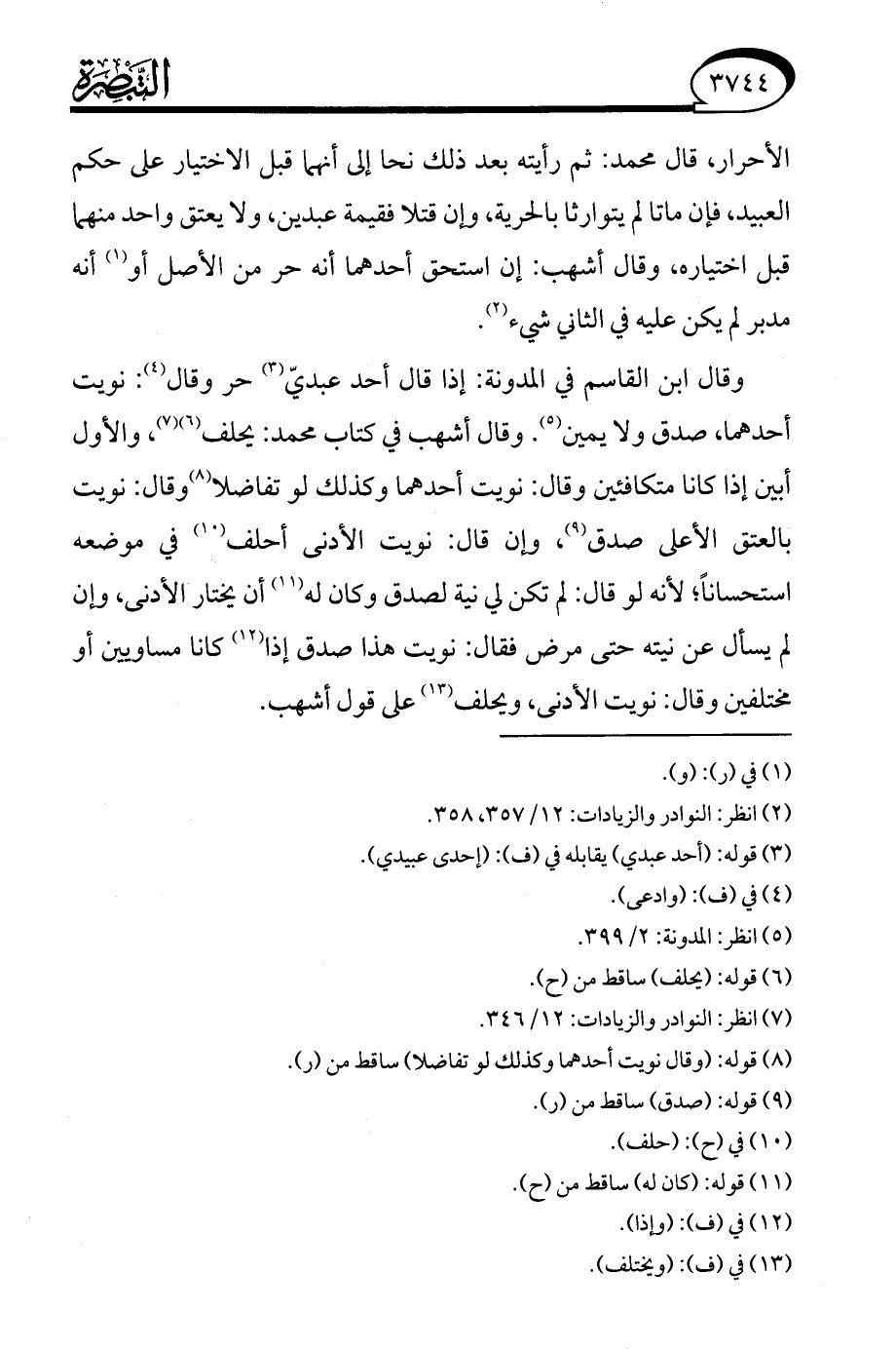 (¬2) انظر: النوادر والزيادات: 12/ 357، 358.