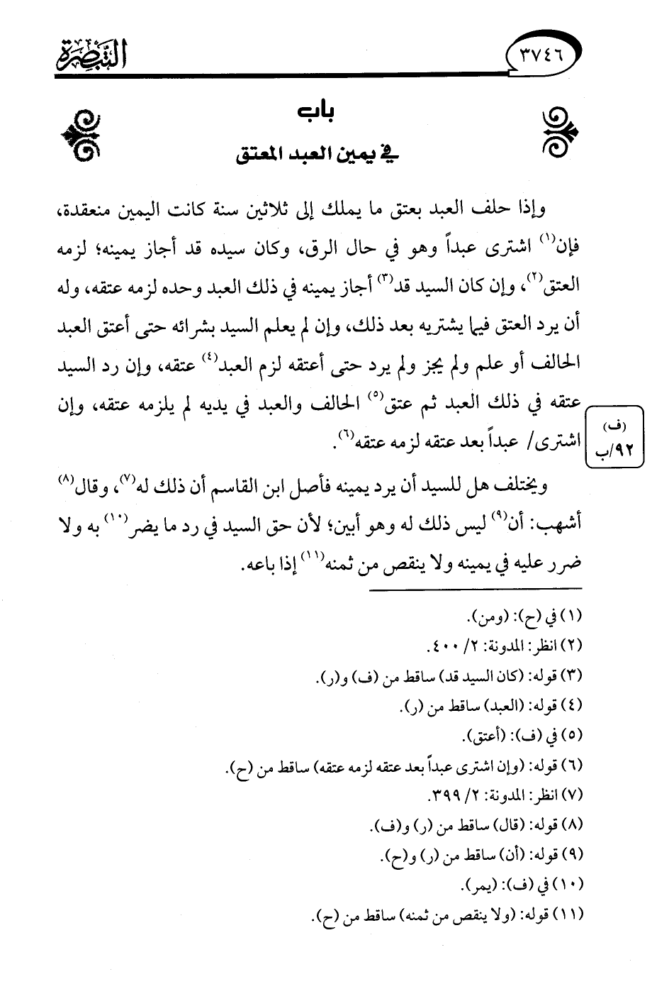 (¬7) انظر: المدونة: 2/ 399.