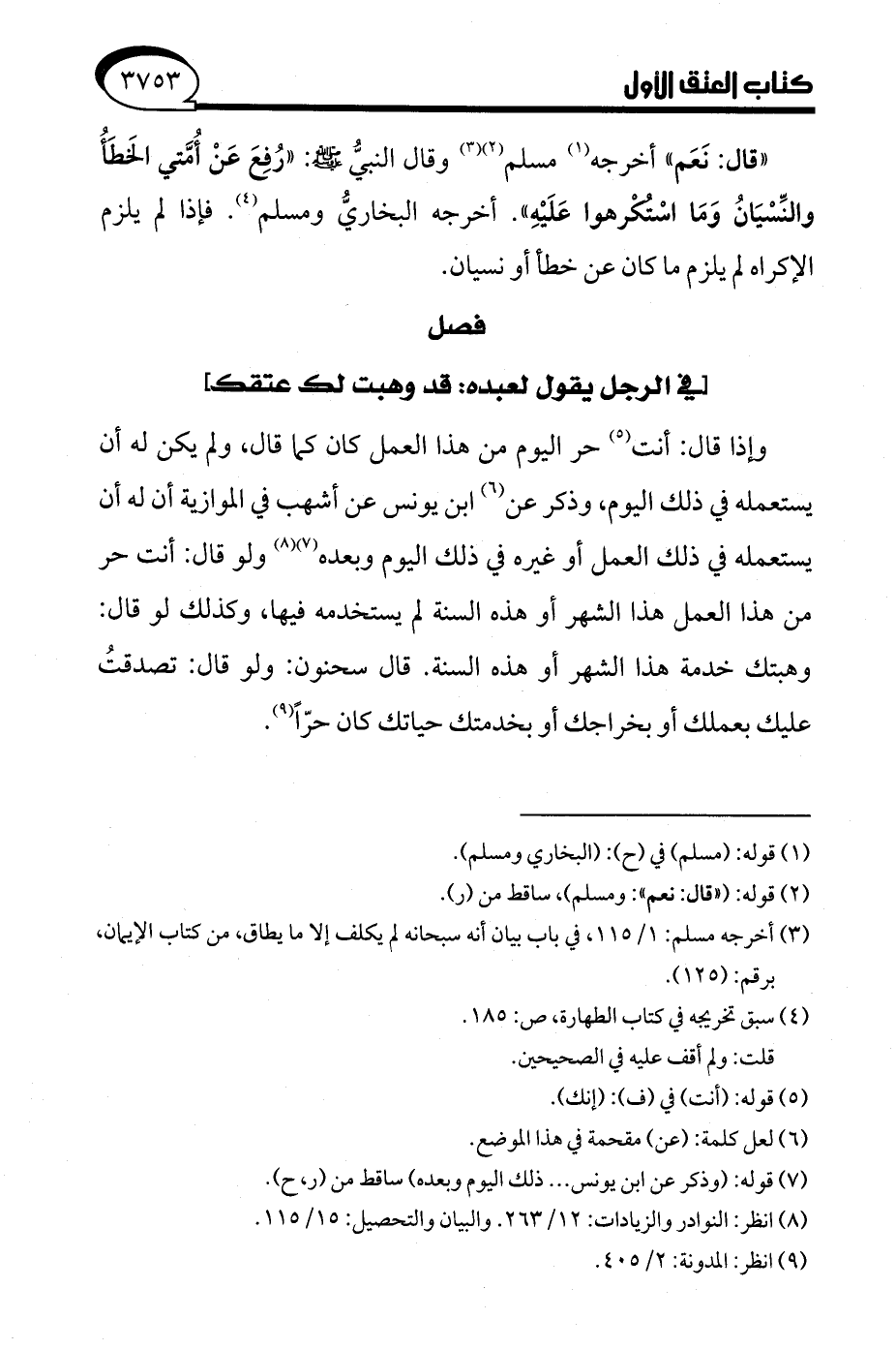 (¬8) انظر: النوادر والزيادات: 12/ 263. والبيان والتحصيل: 15/ 115.