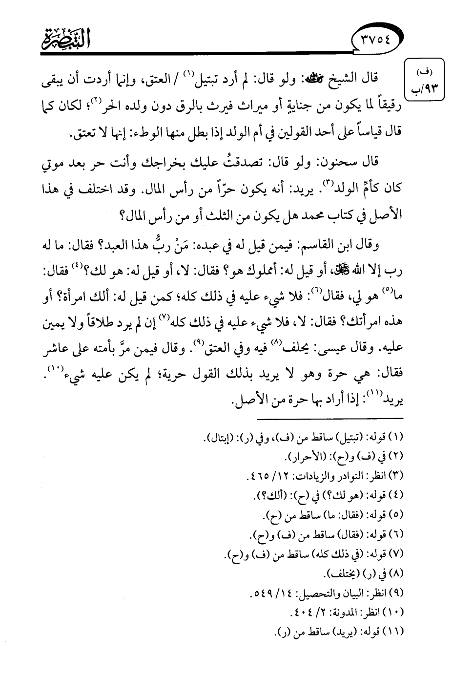 (¬9) انظر: البيان والتحصيل: 14/ 549.