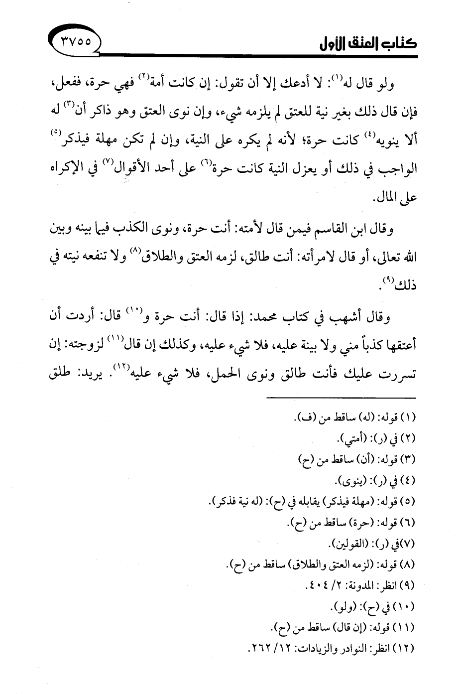 (¬12) انظر: النوادر والزيادات: 12/ 262.