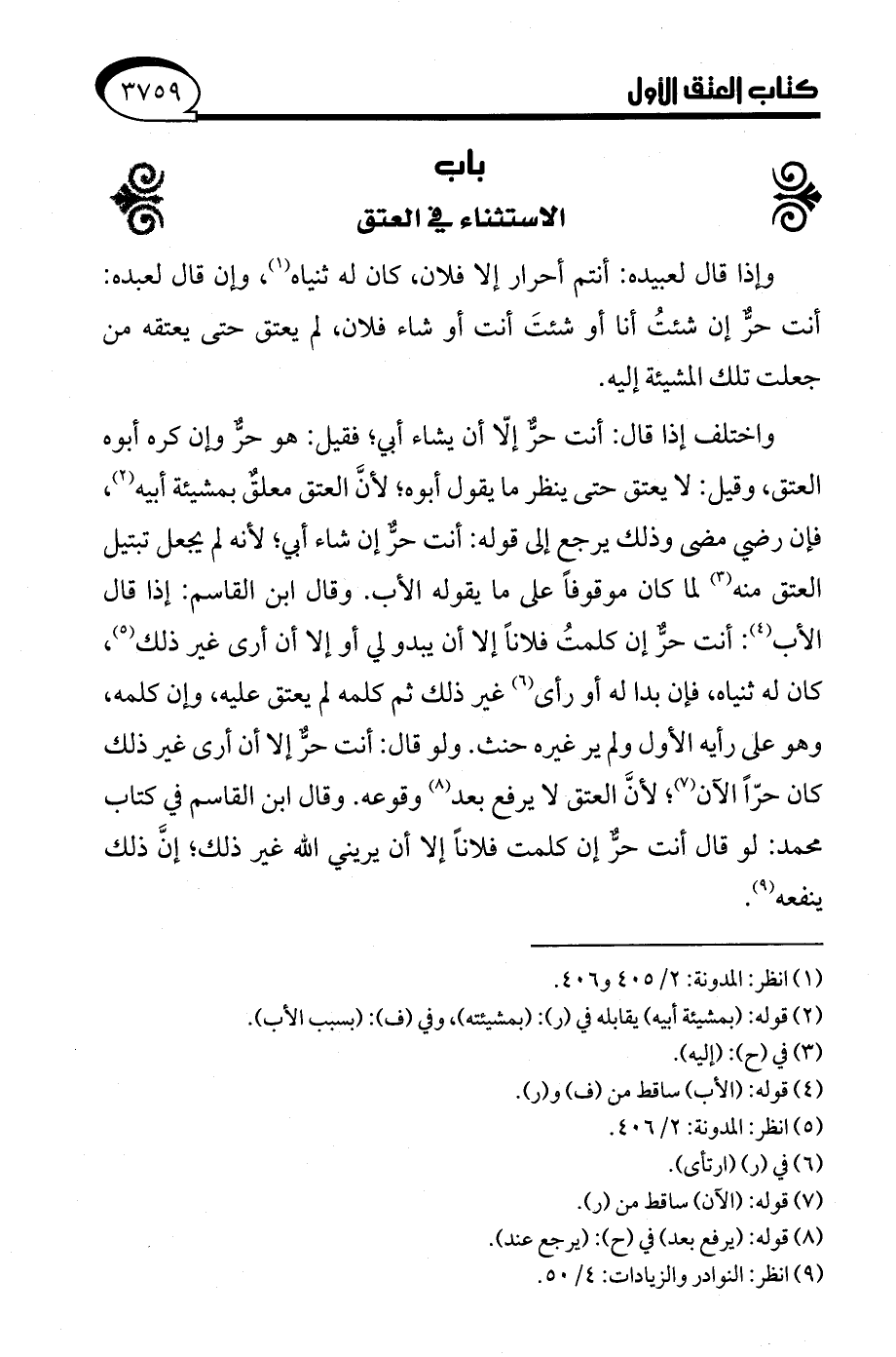 (¬9) انظر: النوادر والزيادات: 4/ 50.