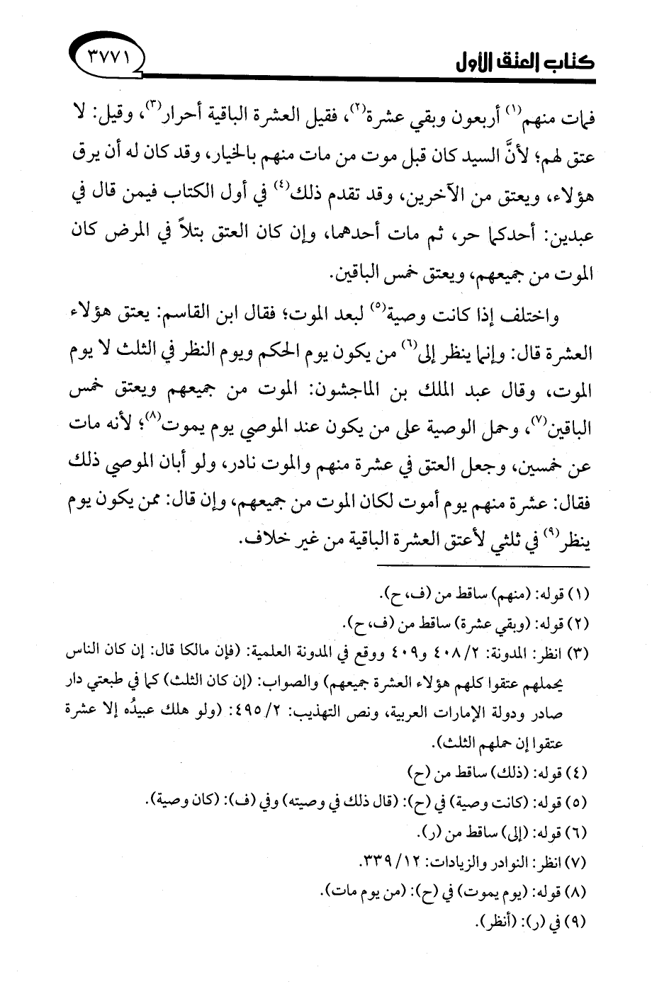 (¬3) انظر: المدونة: 2/ 408 و 409 ووقع في المدونة العلمية: (فإن مالكا قال: إن كان الناس يحملهم عتقوا كلهم هؤلاء العشرة جميعهم) والصواب: (إن كان الثلث) كما في طبعتي دار صادر ودولة الإمارات العربية، ونص التهذيب: 2/ 495: (ولو هلك عبيدُه إلا عشرة عتقوا إن حملهم الثلث).