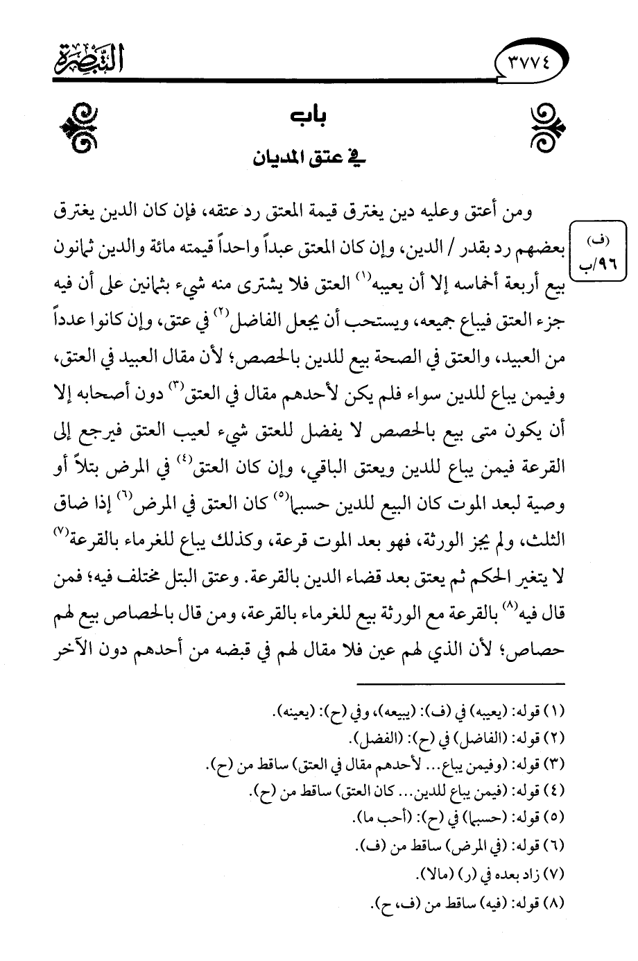 (¬4) قوله: (فيمن يباع للدين. . . كان العتق) ساقط من (ح).