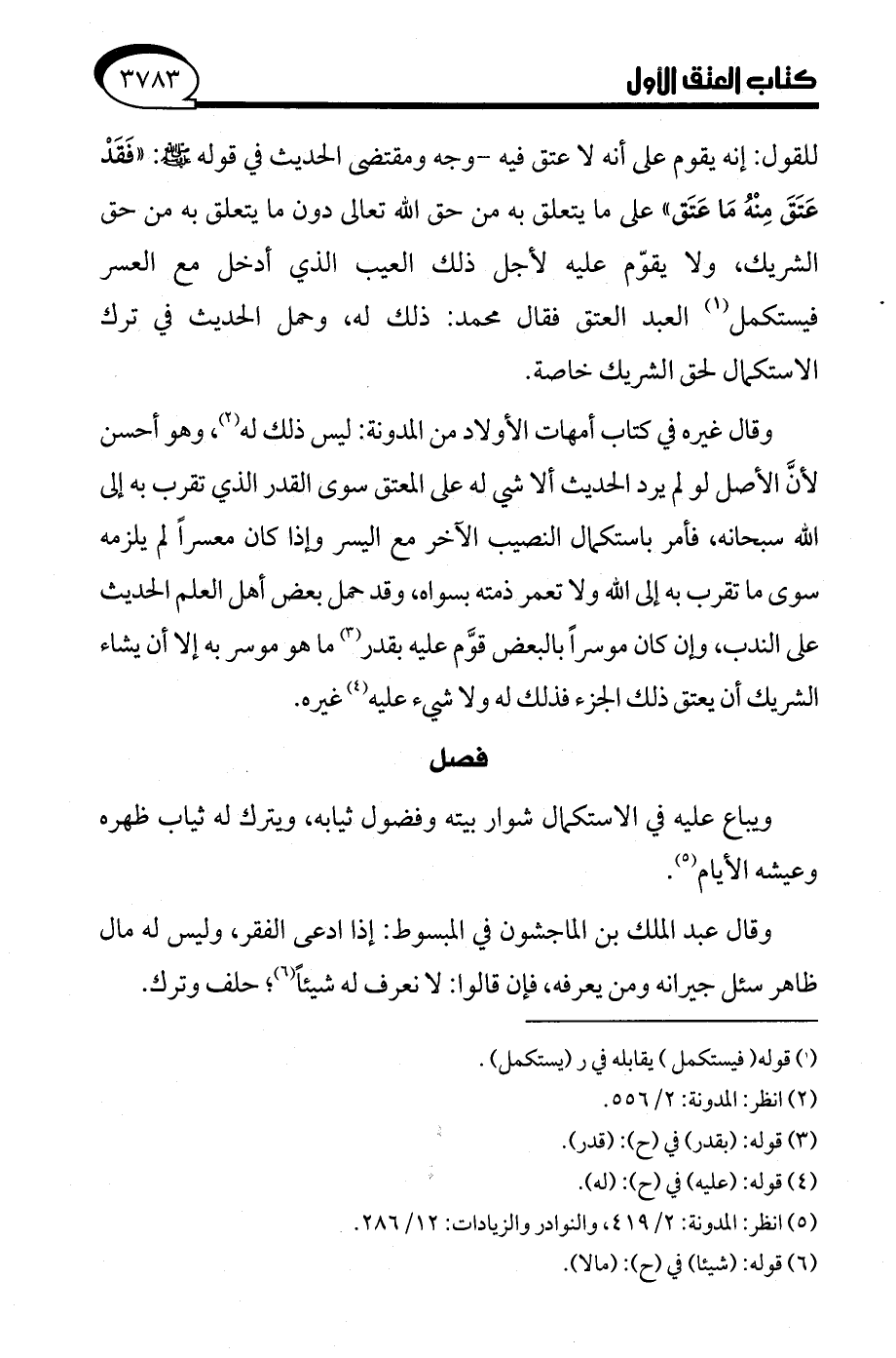 (¬5) انظر: المدونة: 2/ 419، والنوادر والزيادات: 12/ 286.