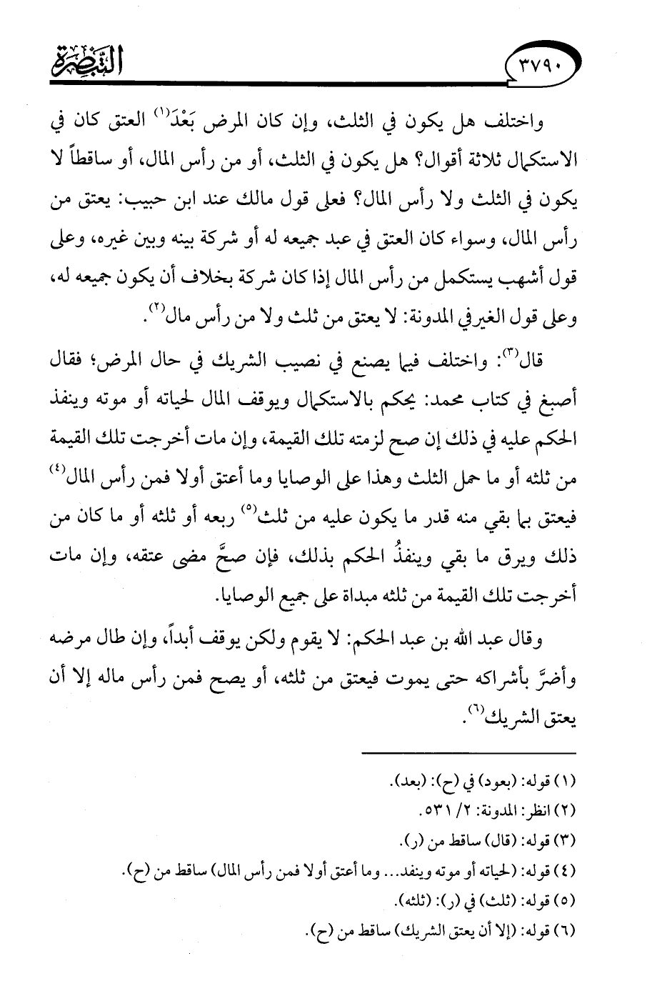 واختلف هل يكون في الثلث، وإن كان المرض بَعْدَ (¬1) العتق كان في الاستكمال ثلاثة أقوال؟ هل يكون في الثلث، أو من رأس المال، أو ساقطًا لا يكون في الثلث ولا رأس المال؟ فعلى قول مالك عند ابن حبيب: يعتق من رأس المال، وسواء كان العتق في عبد جميعه له أو شركة بينه وبين غيره، وعلى قول أشهب يستكمل من رأس المال إذا كان شركة بخلاف أن يكون جميعه له، وعلى قول الغير في المدونة: لا يعتق من ثلث ولا من رأس مال (¬2).