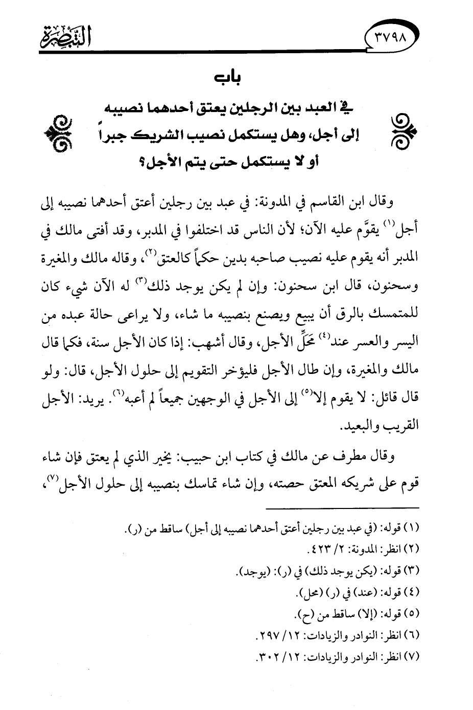(¬7) انظر: النوادر والزيادات: 12/ 302.