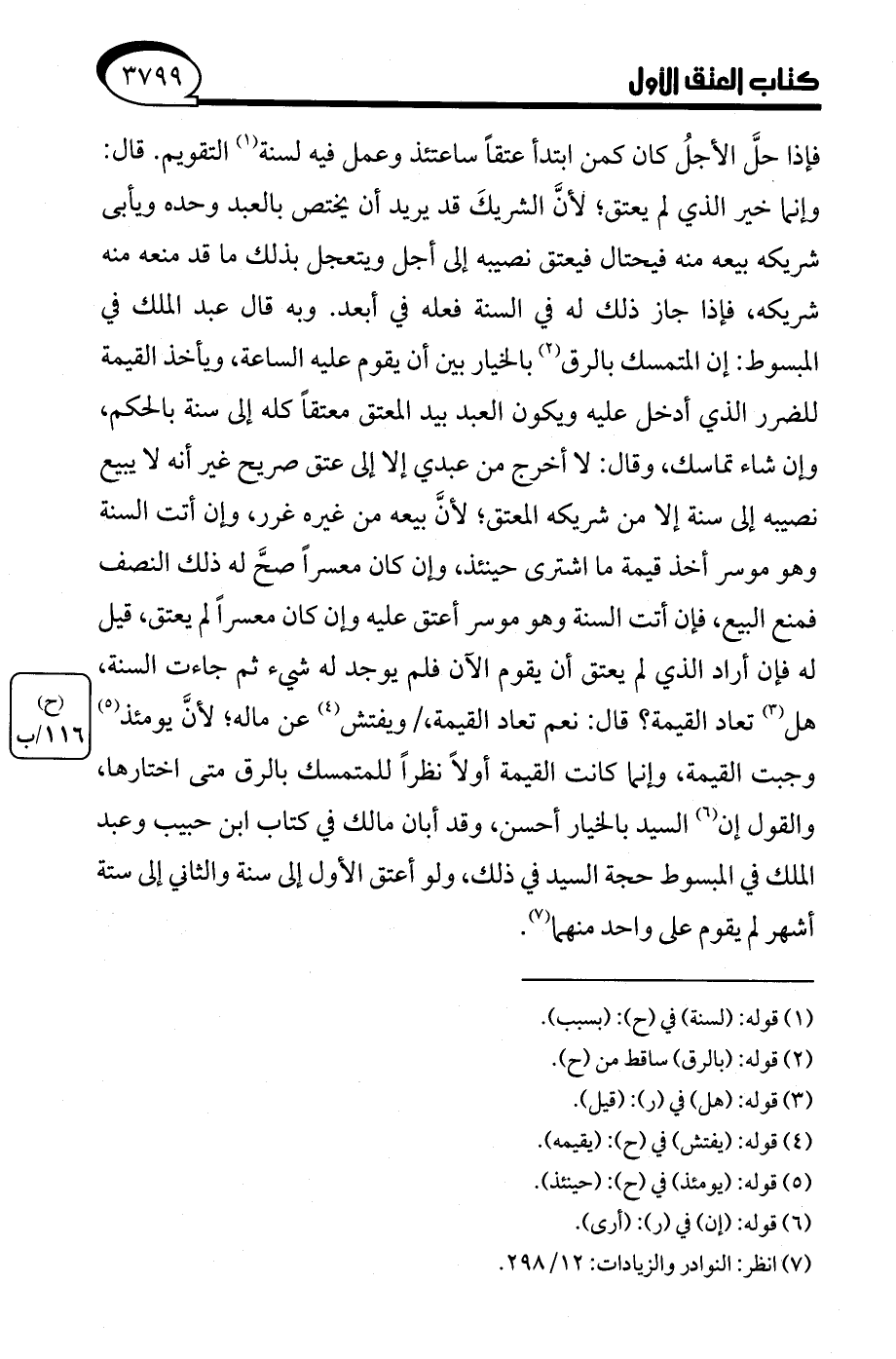 (¬7) انظر: النوادر والزيادات: 12/ 298.