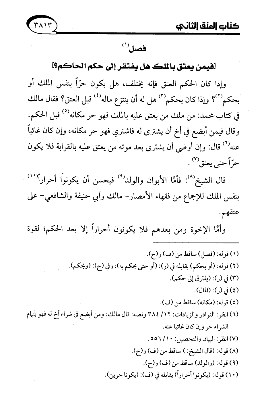 (¬7) انظر: البيان والتحصيل: 10/ 556.