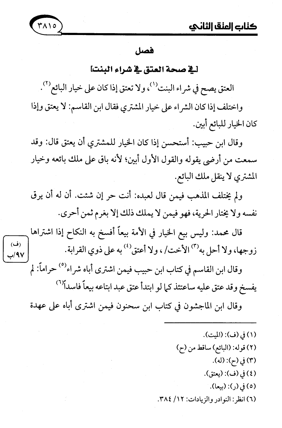 (¬6) انظر: النوادر والزيادات: 12/ 384.