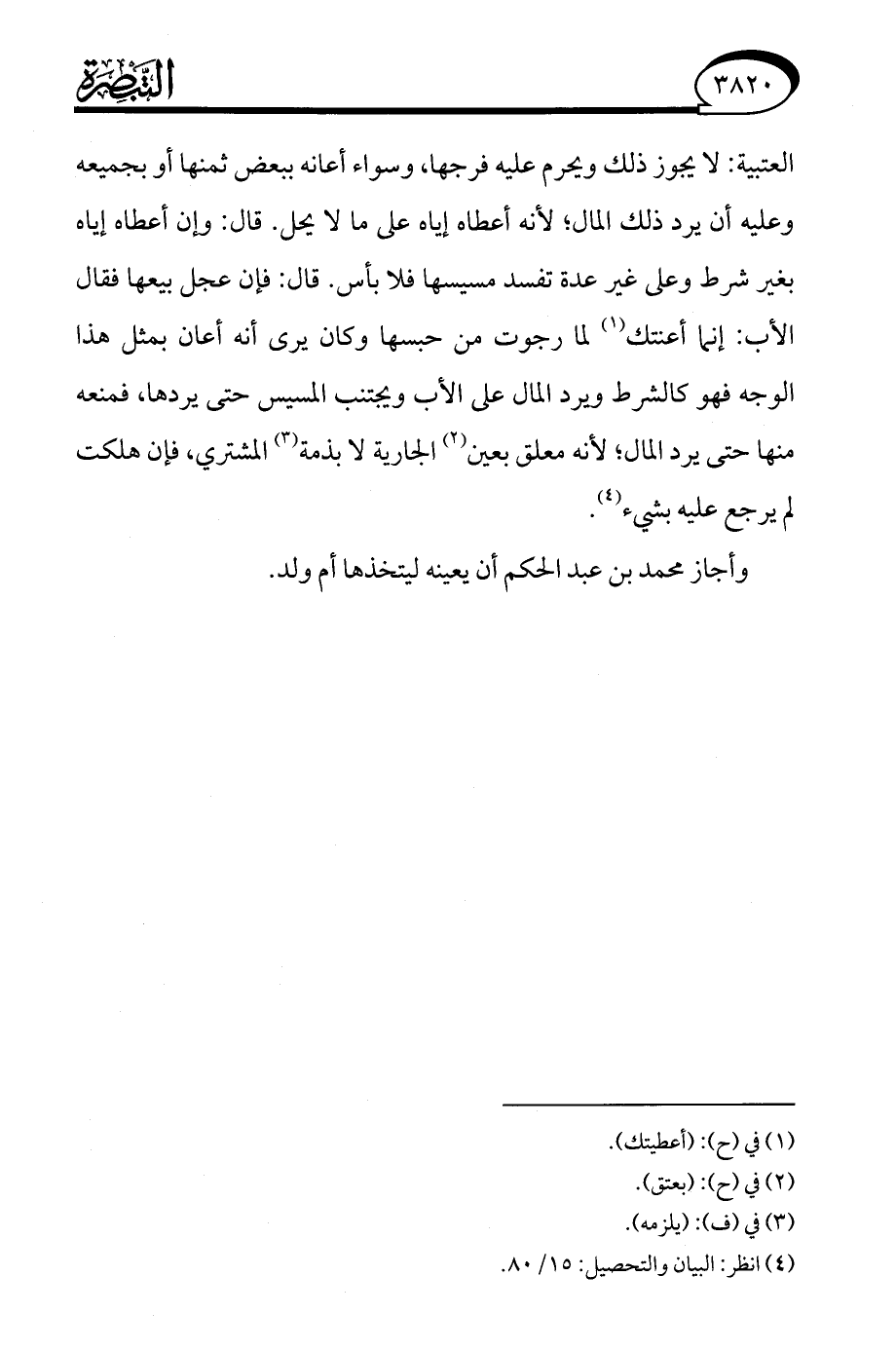 (¬4) انظر: البيان والتحصيل: 15/ 80.