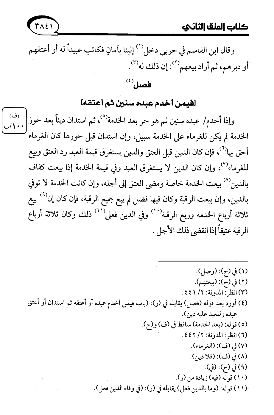 (¬3) انظر: المدونة: 2/ 441.