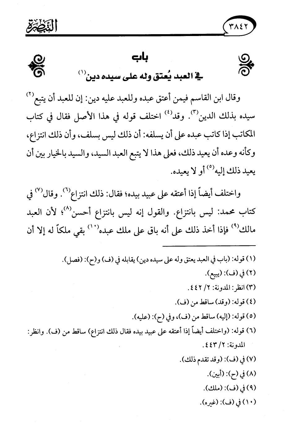 (¬1) قوله: (باب في العبد يعتق وله على سيده دين) يقابله في (ف) و (ح): (فصل).