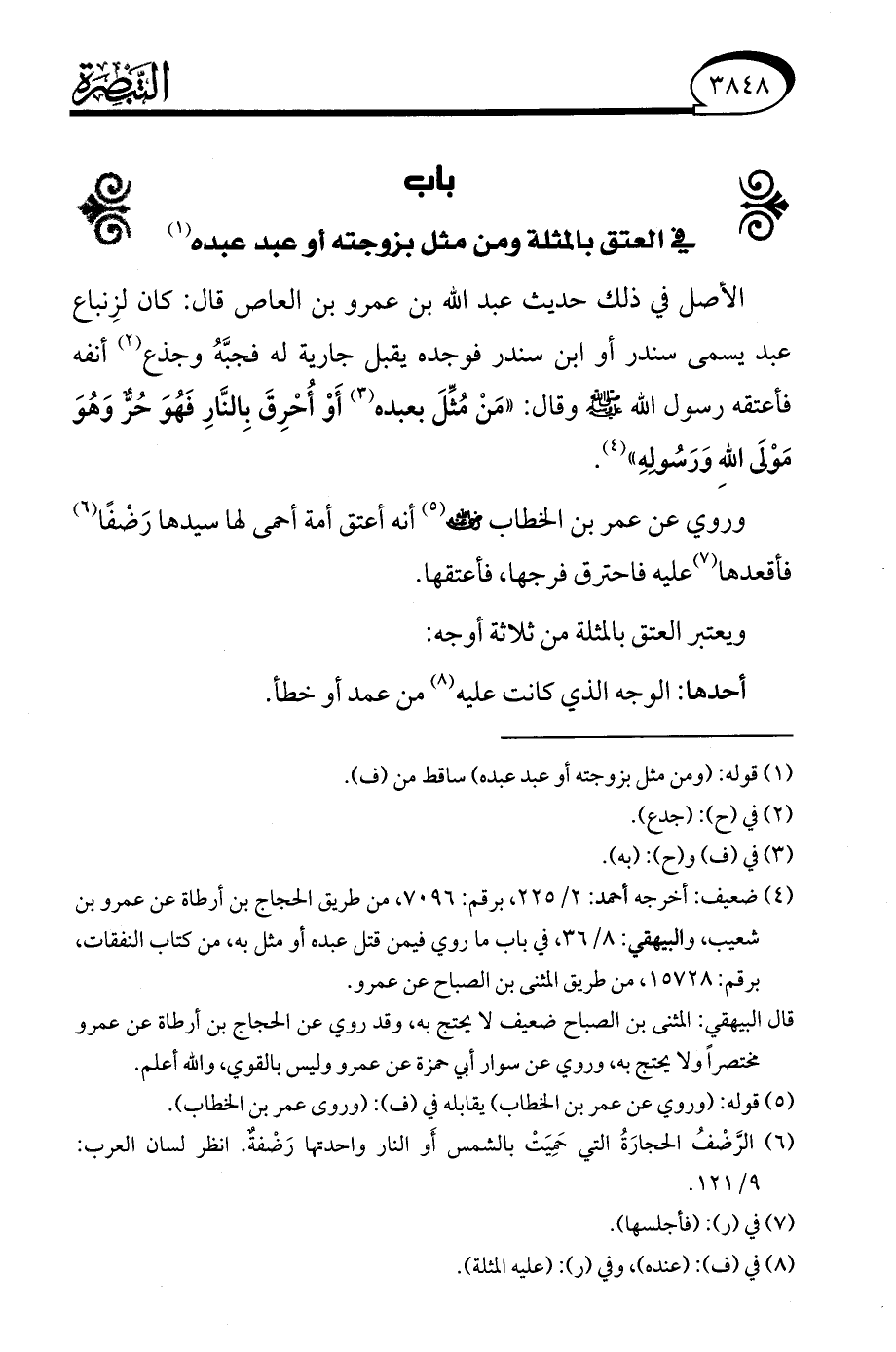 ويعتبر العتق بالمثلة من ثلاثة أوجه: