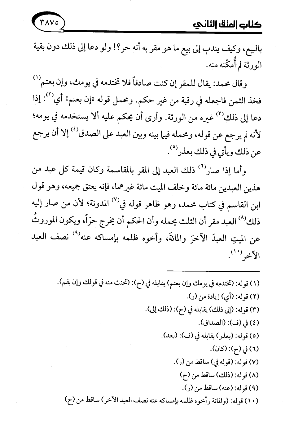 (¬10) قوله: (والمائة وأخوه ظلمه بإمساكه عنه نصف العبد الآخر) ساقط من (ح)