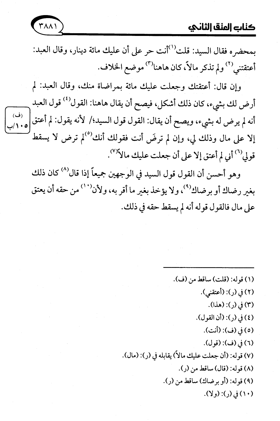 (¬7) قوله: (أن جعلت عليك مالًا) يقابله في (ر): (مال).