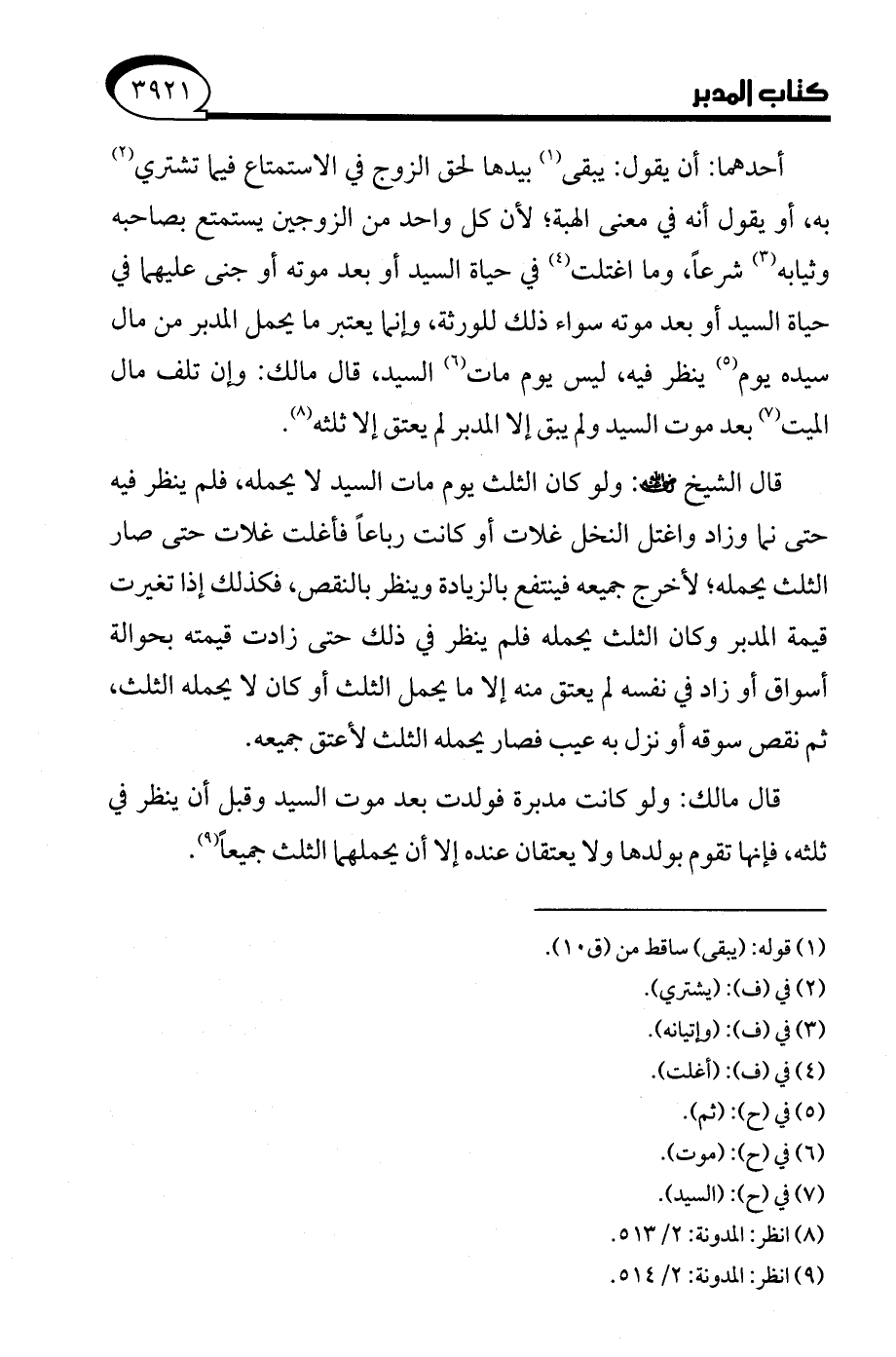 (¬9) انظر: المدونة: 2/ 514.