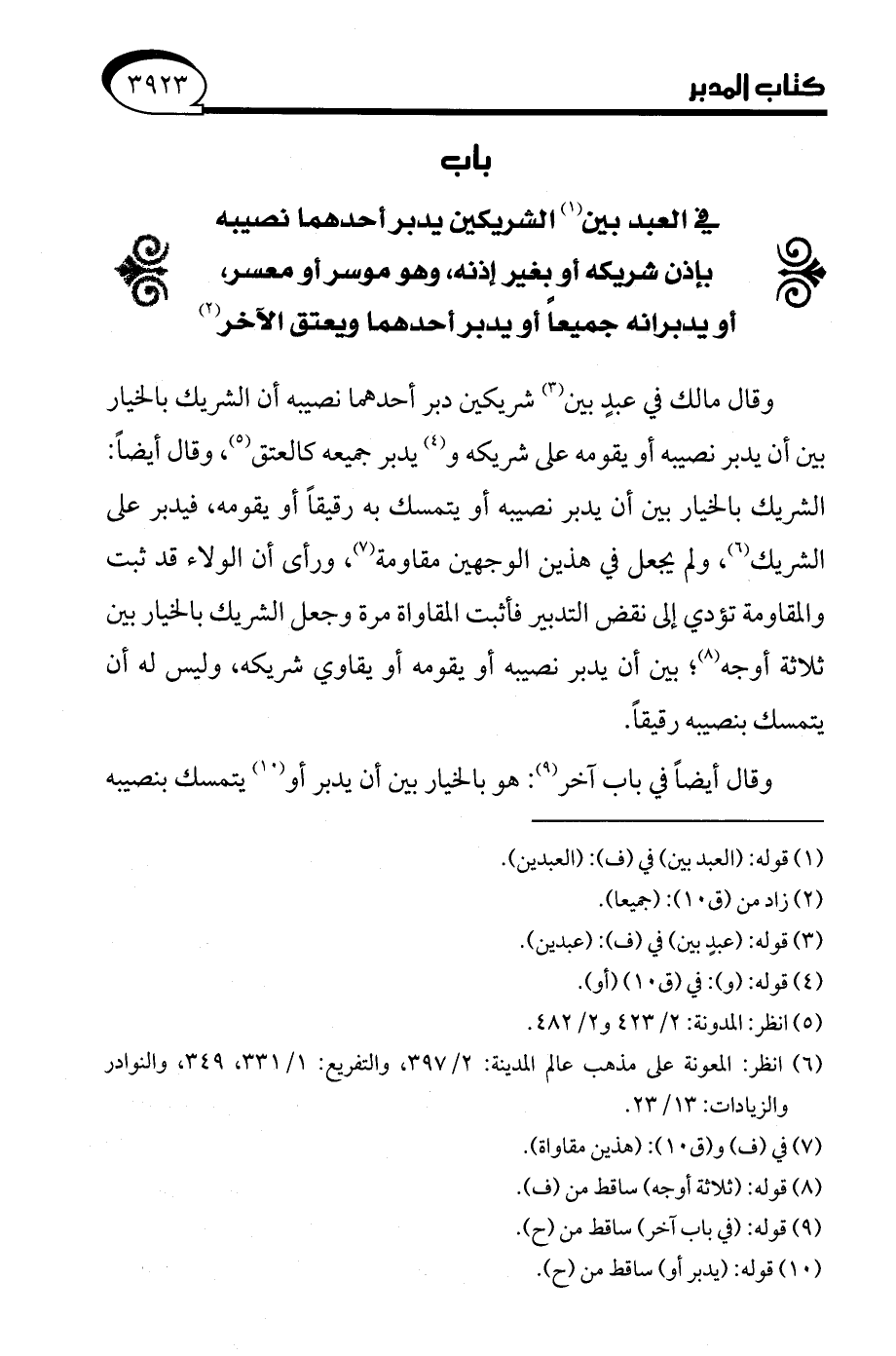 (¬6) انظر: المعونة على مذهب عالم المدينة: 2/ 397، والتفريع: 1/ 331، 349، والنوادر والزيادات: 13/ 23.