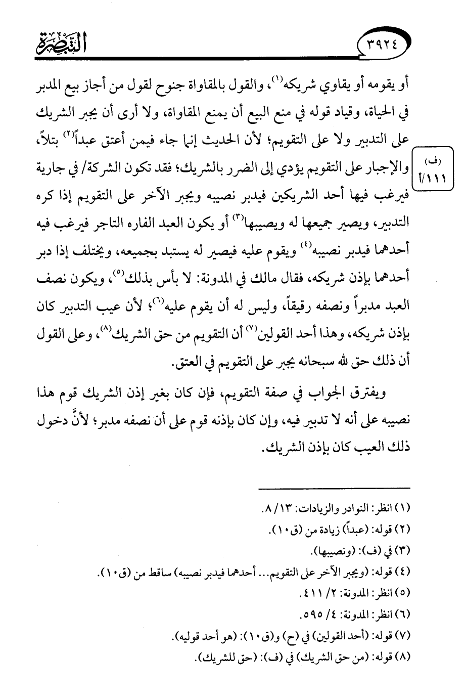 (¬8) قوله: (من حق الشريك) في (ف): (حق للشريك).