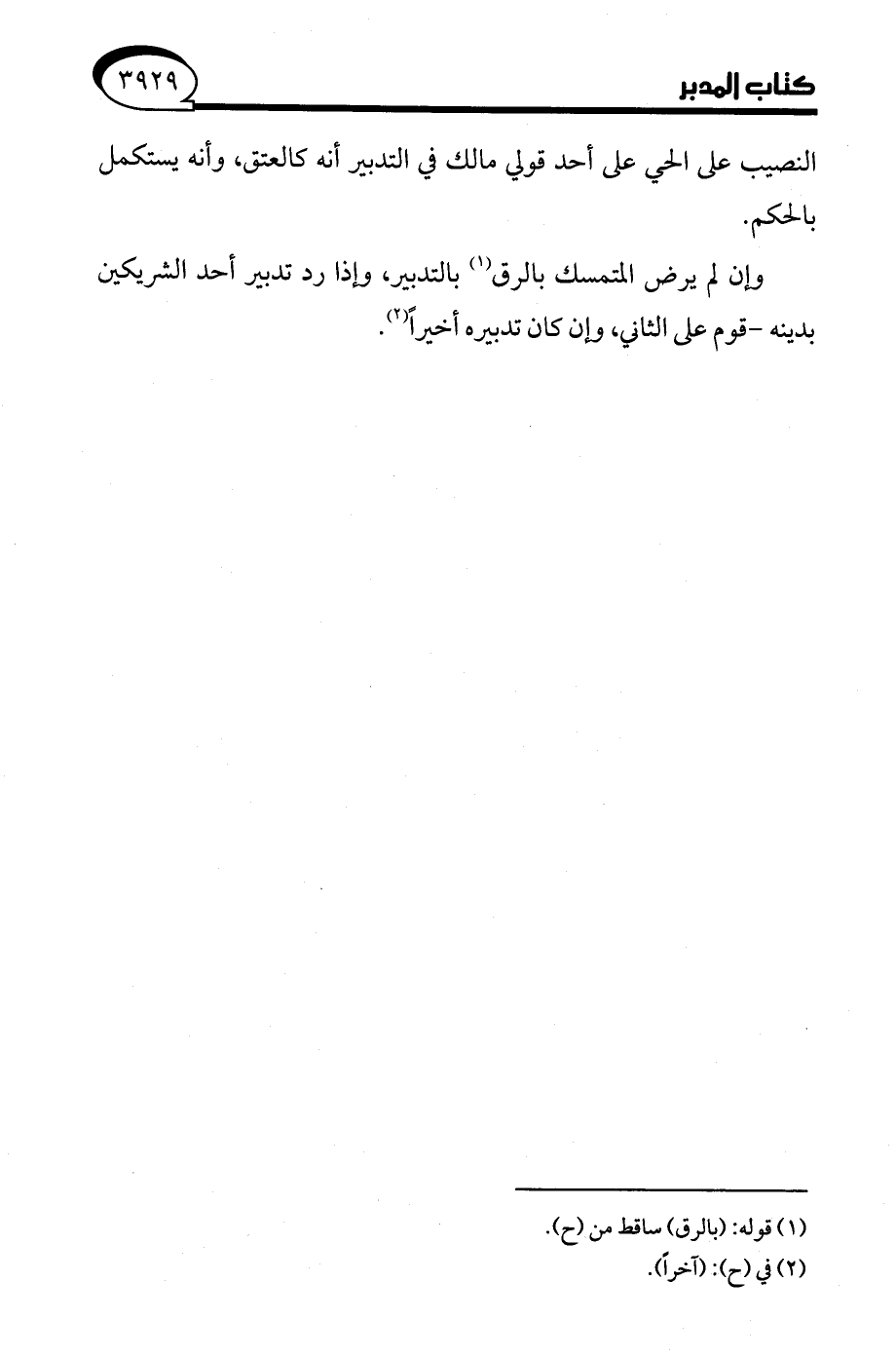 النصيب على الحي على أحد قولي مالك في التدبير أنه كالعتق، وأنه يستكمل بالحكم.