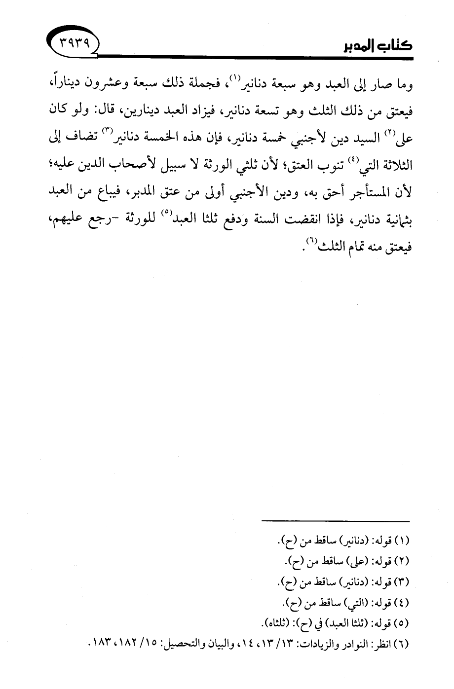 (¬6) انظر: النوادر والزيادات: 13/ 13، 14، والبيان والتحصيل: 15/ 182، 183.