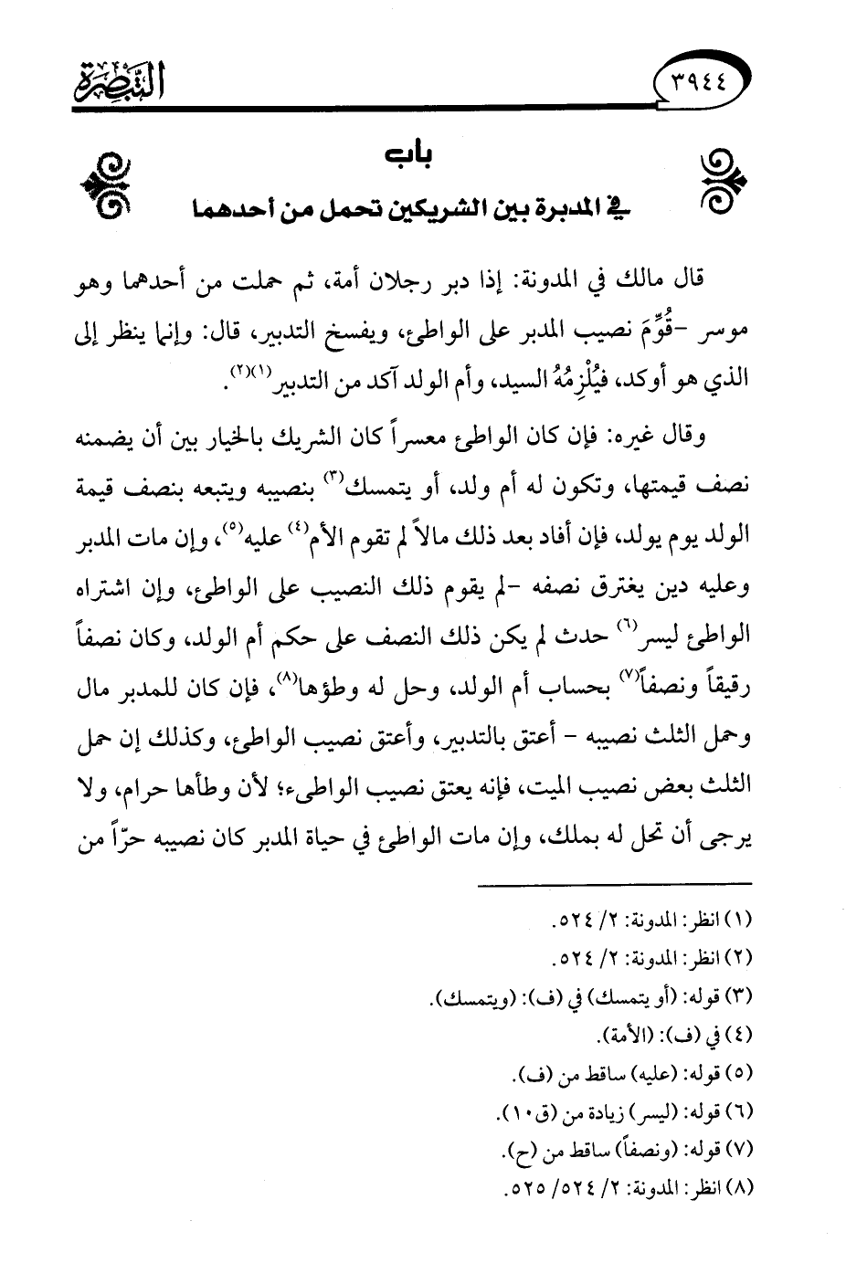 (¬8) انظر: المدونة: 2/ 524، 525.