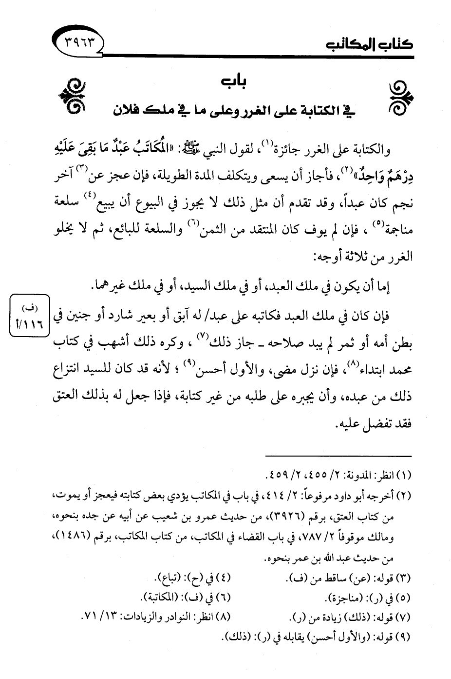 باب في الكتابة على الغرر وعلى ما في ملك فلان
