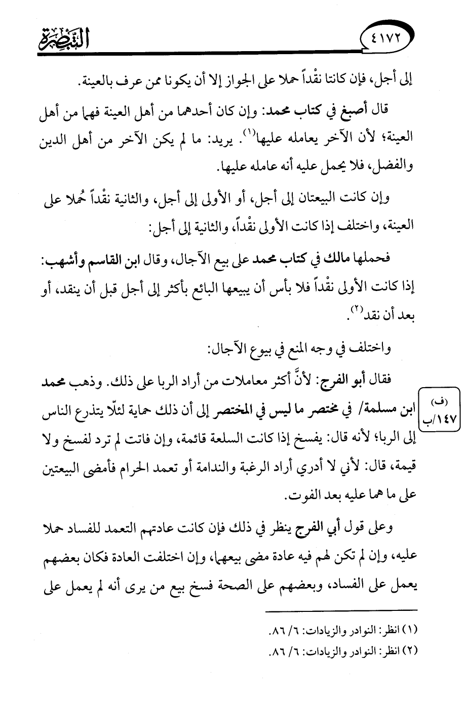 (¬2) انظر: النوادر والزيادات: 6/ 86.