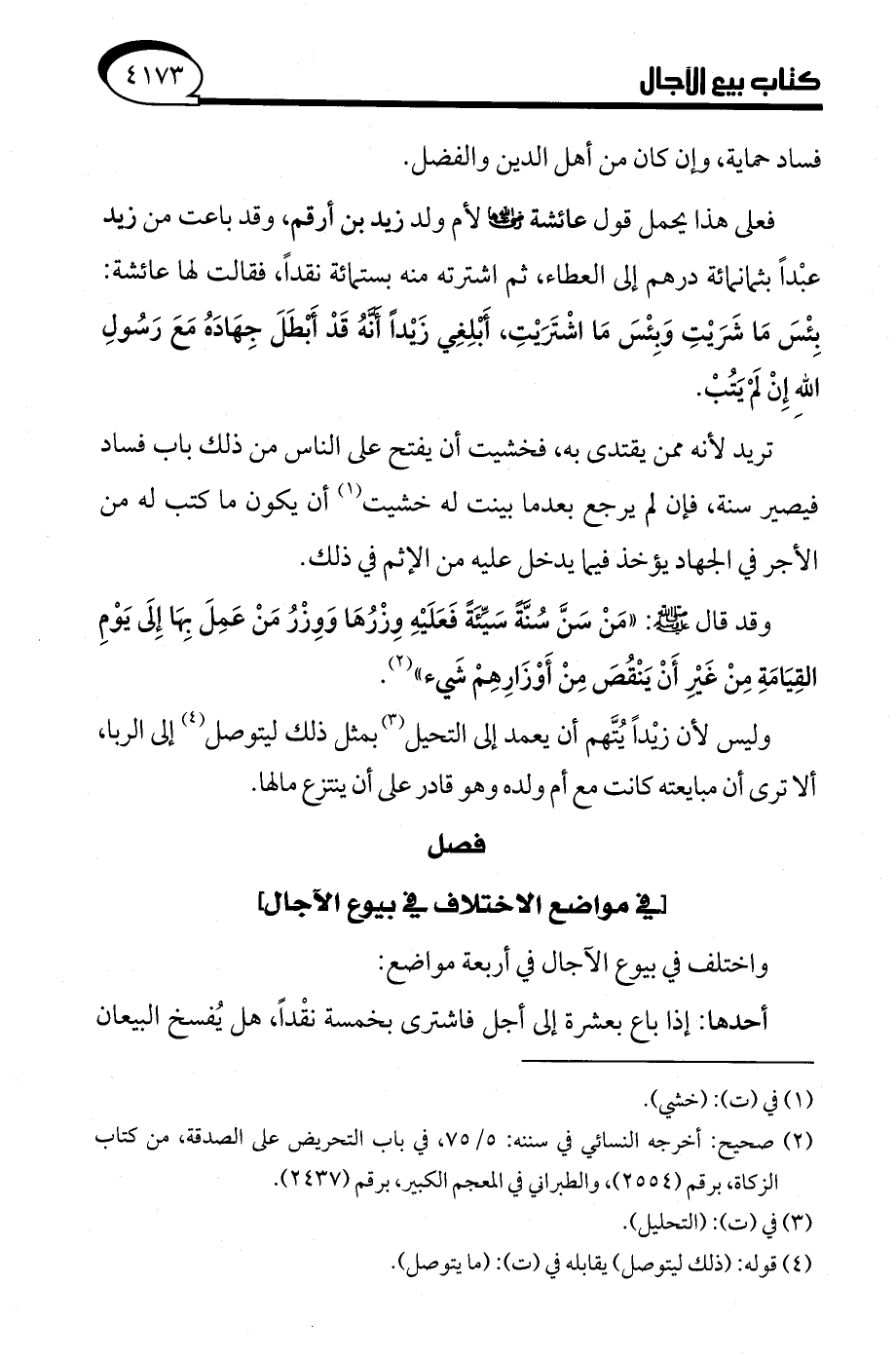 فعلى هذا يحمل قول عائشة - رضي الله عنها - لأم ولد زيد بن أرقم، وقد باعت من زيد عبْدًا بثمانمائة درهم إلى العطاء، ثم اشترته منه بستمائة نقدًا، فقالت لها عائشة: بِئْسَ ما شَرَيْتِ وَبِئْسَ ما اشْتَرَيْتِ، أَبْلِغِي زَيْدًا أَنَّهُ قد أَبْطَلَ جِهادَهُ مَعَ رَسُولِ اللهِ إِنْ لَمْ يَتُبْ.