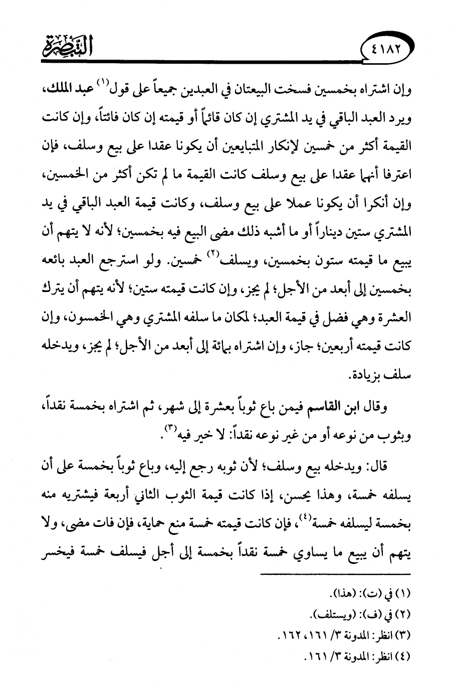 وإن اشتراه بخمسين فسخت البيعتان في العبدين جميعًا على قول (¬1) عبد الملك، ويرد العبد الباقي في يد المشتري إن كان قائمًا أو قيمته إن كان فائتًا، وإن كانت القيمة أكثر من خمسين لإنكار المتبايعين أن يكونا عقدا على بيع وسلف، فان اعترفا أنهما عقدا على بيع وسلف كانت القيمة ما لم تكن أكثر من الخمسين، وإن أنكرا أن يكونا عملا على بيع وسلف، وكانت قيمة العبد الباقي في يد المشتري ستين دينارًا أو ما أشبه ذلك مضى البيع فيه بخمسين؛ لأنه لا يتهم أن يبيع ما قيمته ستون بخمسين، ويسلف (¬2) خمسين. ولو استرجع العبد بائعه بخمسين إلى أبعد من الأجل، لم يجز، وإن كانت قيمته ستين؛ لأنه يتهم أن يترك العشرة وهي فضل في قيمة العبد, لمكان ما سلفه المشتري وهي الخمسون، وإن كانت قيمته أربعين، جاز، وإن اشتراه بمائة إلى أبعد من الأجل، لم يجز، ويدخله سلف بزيادة.