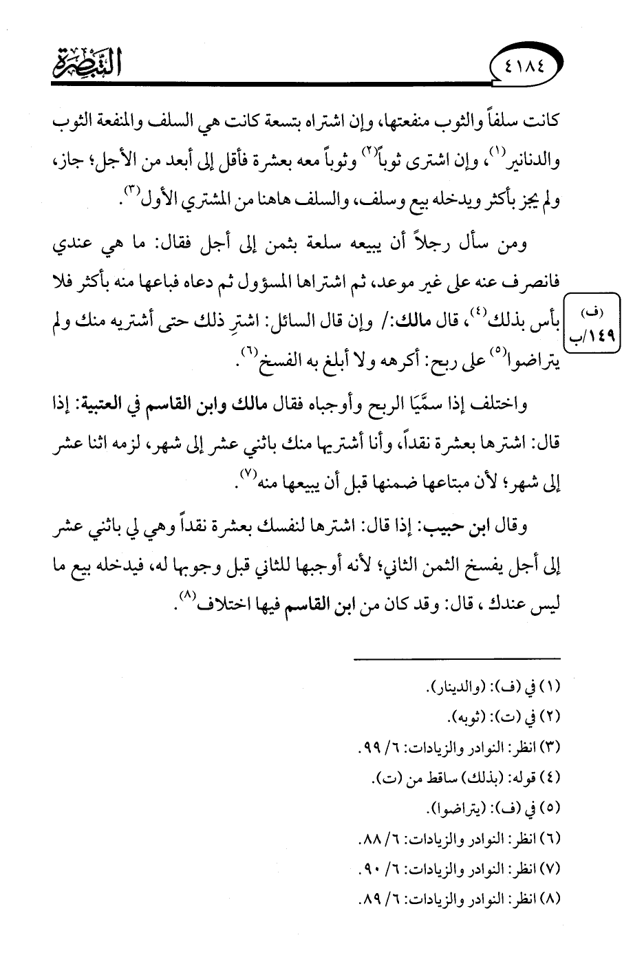 (¬8) انظر: النوادر والزيادات: 6/ 89.