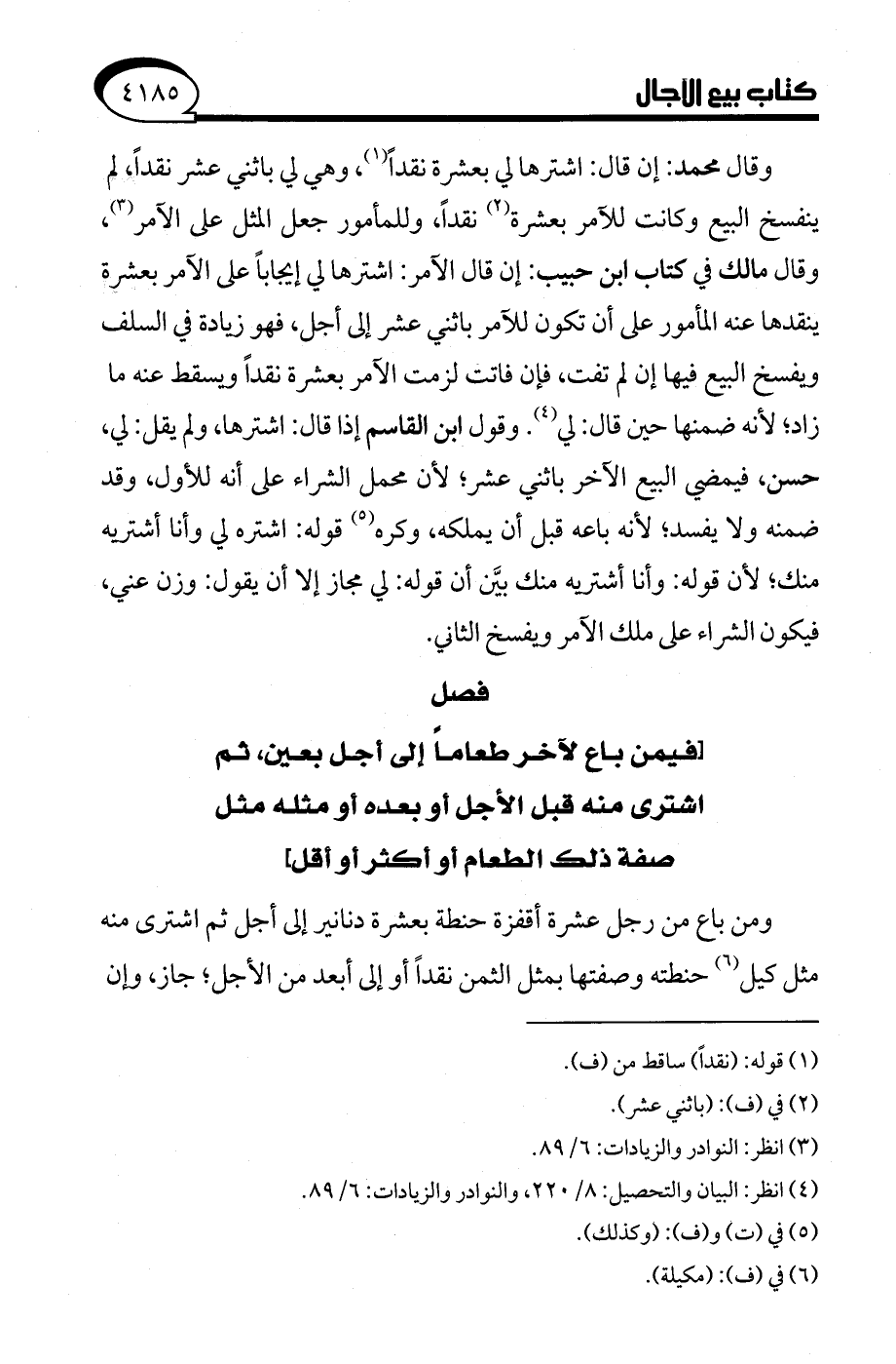 (¬4) انظر: البيان والتحصيل: 8/ 220، والنوادر والزيادات: 6/ 89.