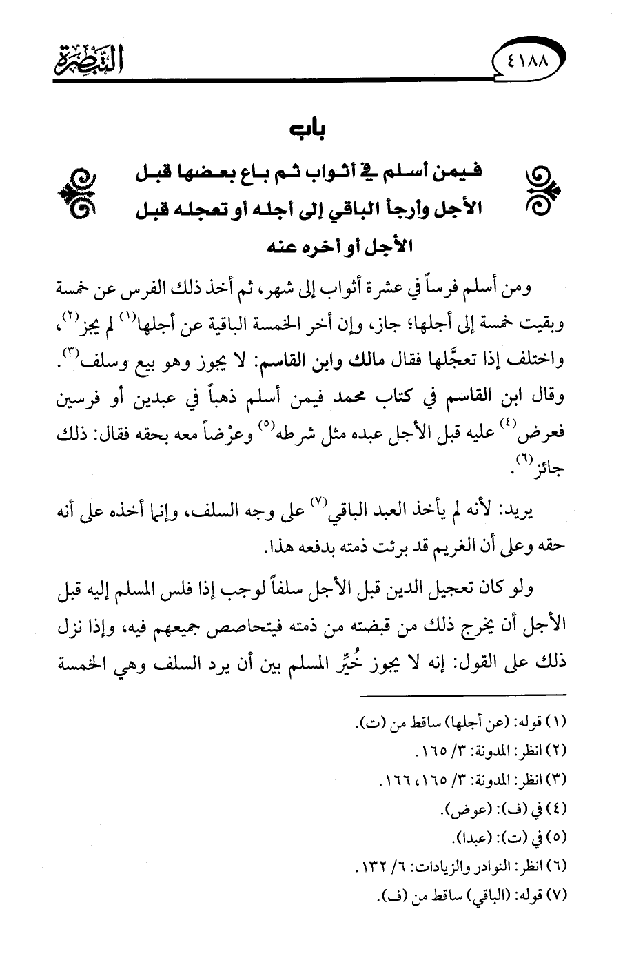 (¬6) انظر: النوادر والزيادات: 6/ 132.