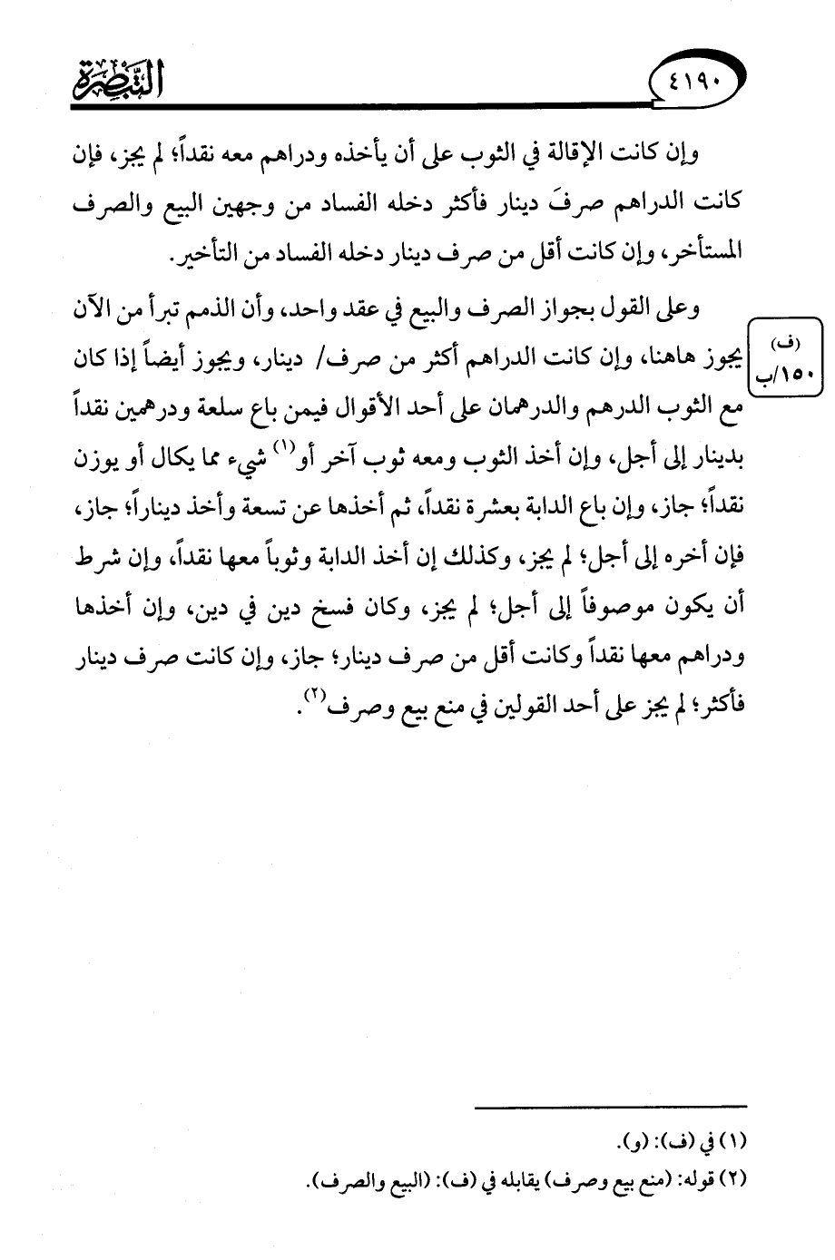 (¬2) قوله: (منع بيع وصرف) يقابله في (ف): (البيع والصرف).