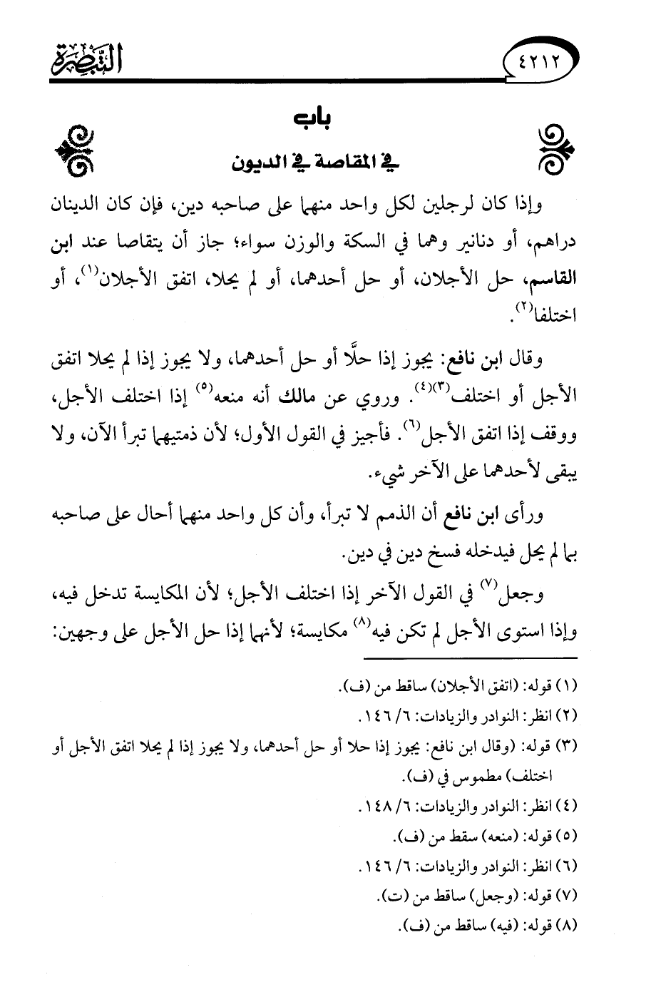 (¬6) انظر: النوادر والزيادات: 6/ 146.