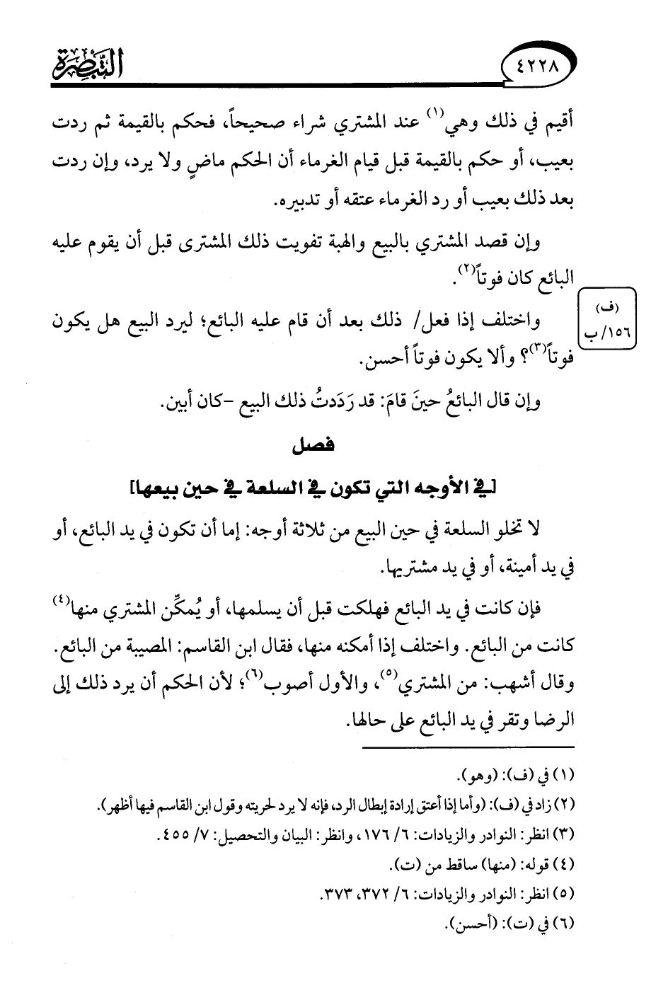 (¬3) انظر: النوادر والزيادات: 6/ 176، وانظر: البيان والتحصيل: 7/ 455.