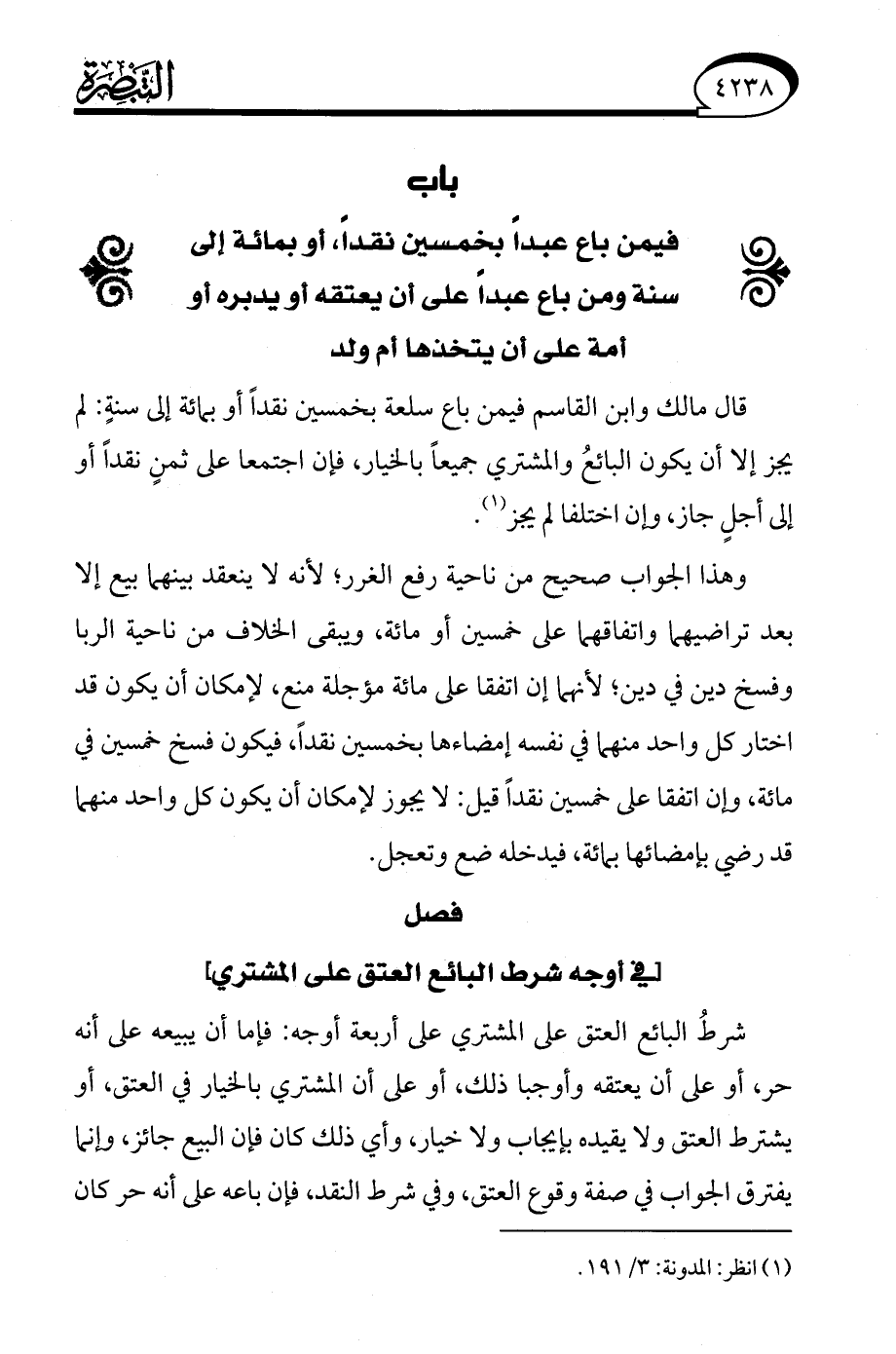 (¬1) انظر: المدونة: 3/ 191.