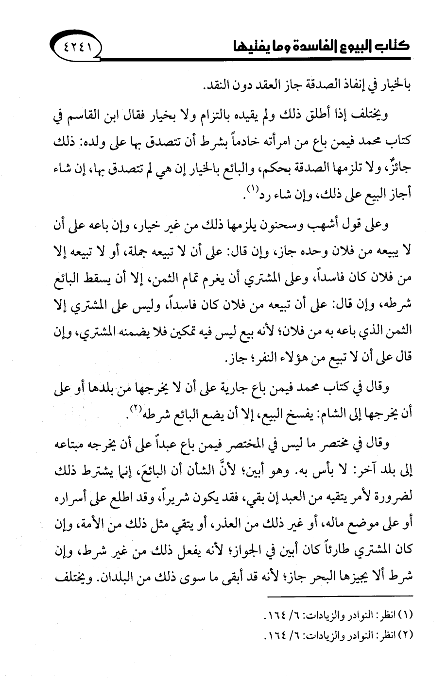 (¬2) انظر: النوادر والزيادات: 6/ 164.