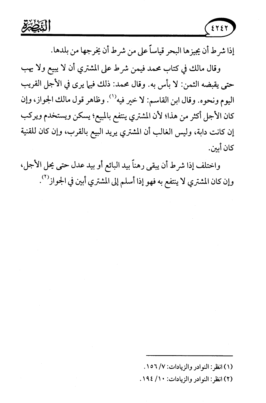 (¬2) انظر: النوادر والزيادات: 10/ 194.