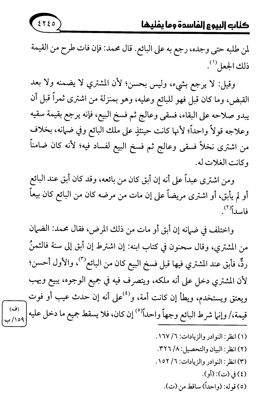(¬3) انظر: النوادر والزيادات: 6/ 152.