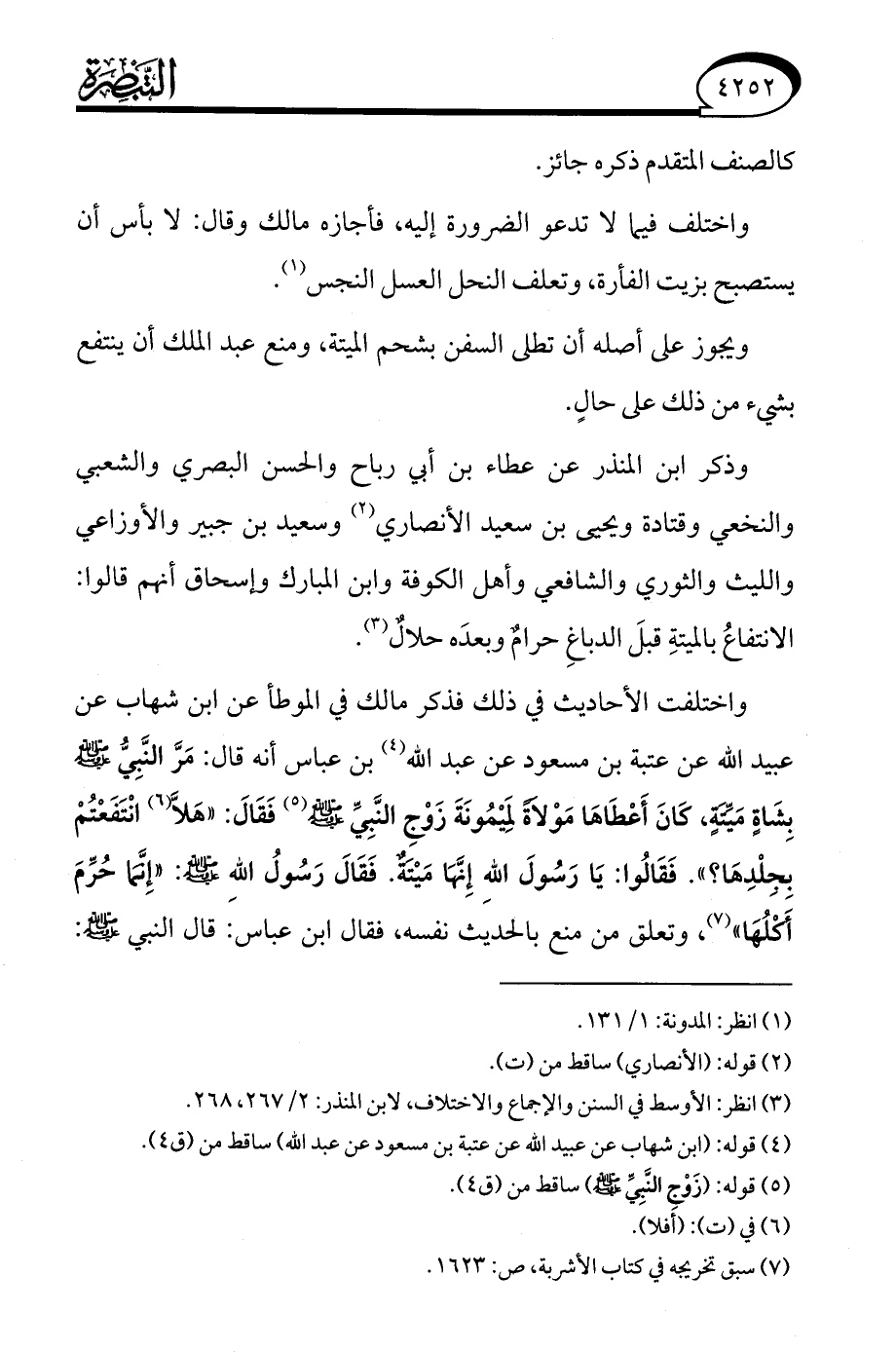 وذكر ابن المنذر عن عطاء بن أبي رباح والحسن البصري والشعبي والنخعي وقتادة ويحيى بن سعيد الأنصاري (¬2) وسعيد بن جبير والأوزاعي والليث والثوري والشافعي وأهل الكوفة وابن المبارك وإسحاق أنهم قالوا: الانتفاعُ بالميتةِ قبلَ الدباغِ حرامٌ وبعدَه حلالٌ (¬3).